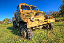 Vůz disponuje hlavní a přídavnou převodovkou. V hlavní převodovce jsou k dispozici čtyři stupně pro jízdu vpřed, jeden stupeň pro jízdu vzad. Přídavná převodovka je dvoustupňová (silniční převod a redukovaný převod pro terén). Převodovka není synchronizována, řazení je nutno provádět s dvojitým vyšlápnutím spojky při vzestupném řazení a při sestupném nutno užít ještě meziplynu. Vedle sedačky řidiče se zapíná terénní redukce, přední náhon a naviják. Uzávěrky jsou ovládány mechanicky táhlem.