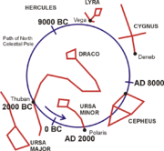 V současné době je severní nebeský pól přibližně ve vzdálenosti asi 1° od Polárky, ale v důsledku precese se k ní nyní stále přibližuje, až kolem roku 2102 bude k ní nejblíže. Pak se opět začne od ní vzdalovat a její úlohu při navigaci převezmou jiné hvězdy, např. zhruba za 12 000 let to bude hvězda Vega v souhvězdí Lyry.