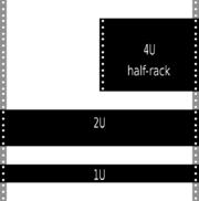 Poloviční racková jednotka (half-rack) obvykle popisuje celek, který zapadá do určitého počtu rackových jednotek, ale obsadí pouze polovinu šířky 19 palcového racku (tj. 9,5 palce, resp. 241 mm). Poloviční šířka se používá v případě, že zařízení nevyžaduje plnou šířku racku, ale může vyžadovat více, než 1U výšky. Například DVCAM deska s rozměrem „4U half-rack“ obsadí 4U (7 palců) výšky a 9,5 palce šířky. Teoreticky mohou být vedle sebe upevněny dvě 4U half-rack desky.