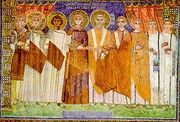 - Bazilika San Apollinare Nuovo, postavená Theodorichem Velikým kolem roku 520, je trojlodní stavba s dřevěným stropem a štíhlými mramorovými sloupy. Po obou stranách hlavní lodi jsou pásy mozaik s výjevy z evangelí, postavami světců a panovníka.