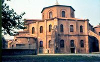 - Kostel San Vitale, osmiboká cihlová stavba s lucernou uprostřed a bohatým mozaikovým stropem, dokončená roku 548. Pokládá se za nejlepší soubor byzantských mozaik mimo Byzanci. Kostel byl vzorem pro císařský kostel Karla Velikého v Cáchách.