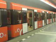 První souprava metra s celovozovou reklamou, byl vlak typu 81-71 na lince B, a to v bílo-modrém provedení a výrobky společnosti Ardo. Později se však další reklamní soupravy neobjevily, hlavně díky tomu, že metro není pro inzerenty tolik atraktivní jako například tramvaje nebo autobusy. Výjimkou se stala reklamní souprava M1, kterou v září 2007 opatřil svým červeno-bílým nátěrem telefonní operátor Vodafone.[2] (jedná se o vozy 4017, 4210, 4211, 4212 a 4108)