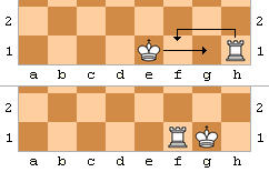 - je to jediný tah, kdy může věž při svém pohybu přeskočit jinou figuru (krále)