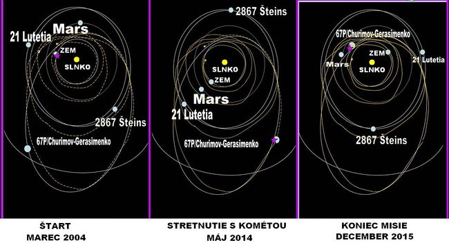 - listopad 2014 - prosinec 2015 - doprovázení komety na dráze kolem Slunce