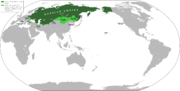 Ruská říše roku 1866. Světle zeleně jsou označeny oblasti pod ruským vlivem