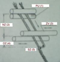 Zaoblovací ústrojí odvádí přásty rychlostí 220 metrů při 1000 vratých pohybech horního válečku za minutu. Za těchto podmínek se mění každých 110 mm délky příze směr zákrutu a na místě obrátky vzniká nezakroucený úsek o délce asi 20 mm. Aby se nezakroucená místa z obou přástů nesetkaly v hotové přízi, druží se obě části s posunem o určitou délku (bod SZ 5 na nákresu) a tím se redukuje zeslabení na polovinu. Tato „samoskaná“ příze se musí před upotřebením ke tkaní zpevnit zákrutem na (zpravidla dvouzákrutovém) skacím stroji, k výrobě pletenin se může údajně použít bez doskávání.