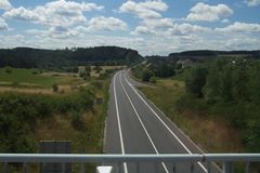 V některých úsecích (kolem Milína a Mirotic) je již vystavena v polovičním profilu budoucí rychlostní silnice.