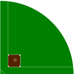 Hrací pole je definováno dvěma základními čarami nebo pomezními čarami , které se protínají v pravém úhlu na domácí metě. Minimální délka základních čar se liší podle podmínek hry (viz dále pro oficiální míry). Plot mezi základními čarami je hranicí hracího pole; tento plot je stejně vzdálený od domácí mety ve všech bodech.