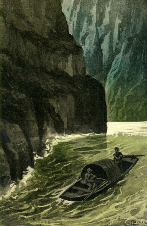 - English: An illustration from Jules Verne's novel "The Danube Pilot" (1908) drawn by George Roux.