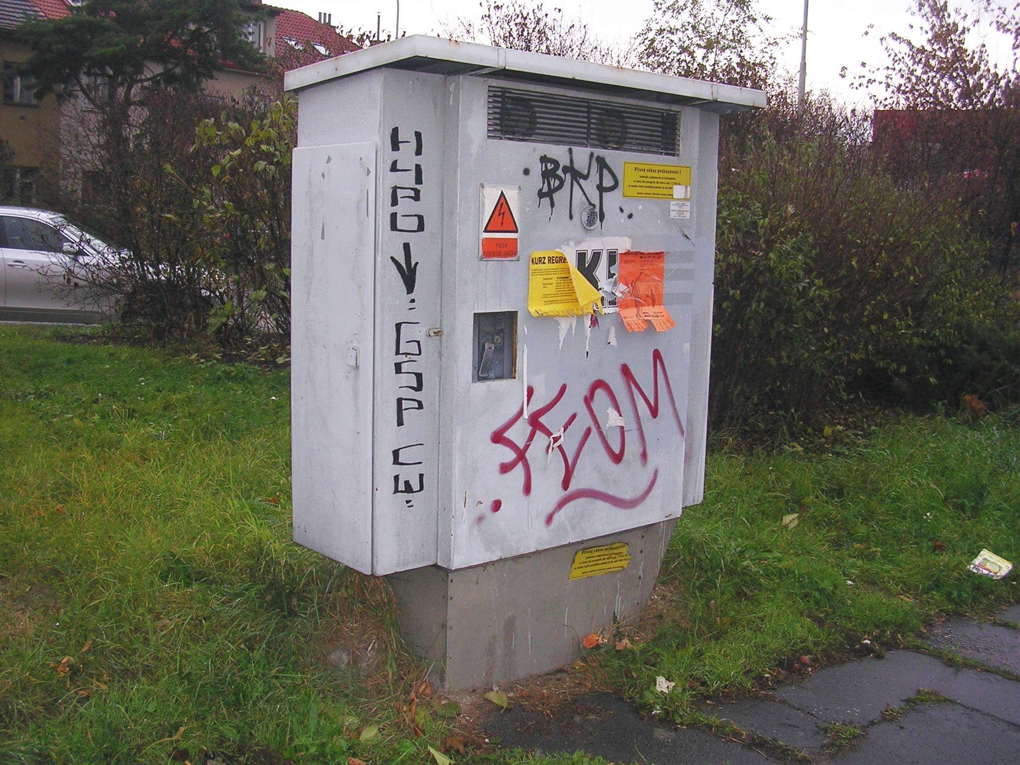 - Čeština: Světelné signály, Praha-Zahradní Město (křižovatka Švehlova - Topolová - Ždánická). Skříň s řadičem světelné signalizace.
