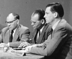 - Journalistengespräch über die Saarfrage. Die Bundestagsabgeordneten Trittelvitz (SPD) und Eugen Gerstenmaier (CDU) stellten sich dem Kreuzfeuer von vier Journalisten.
