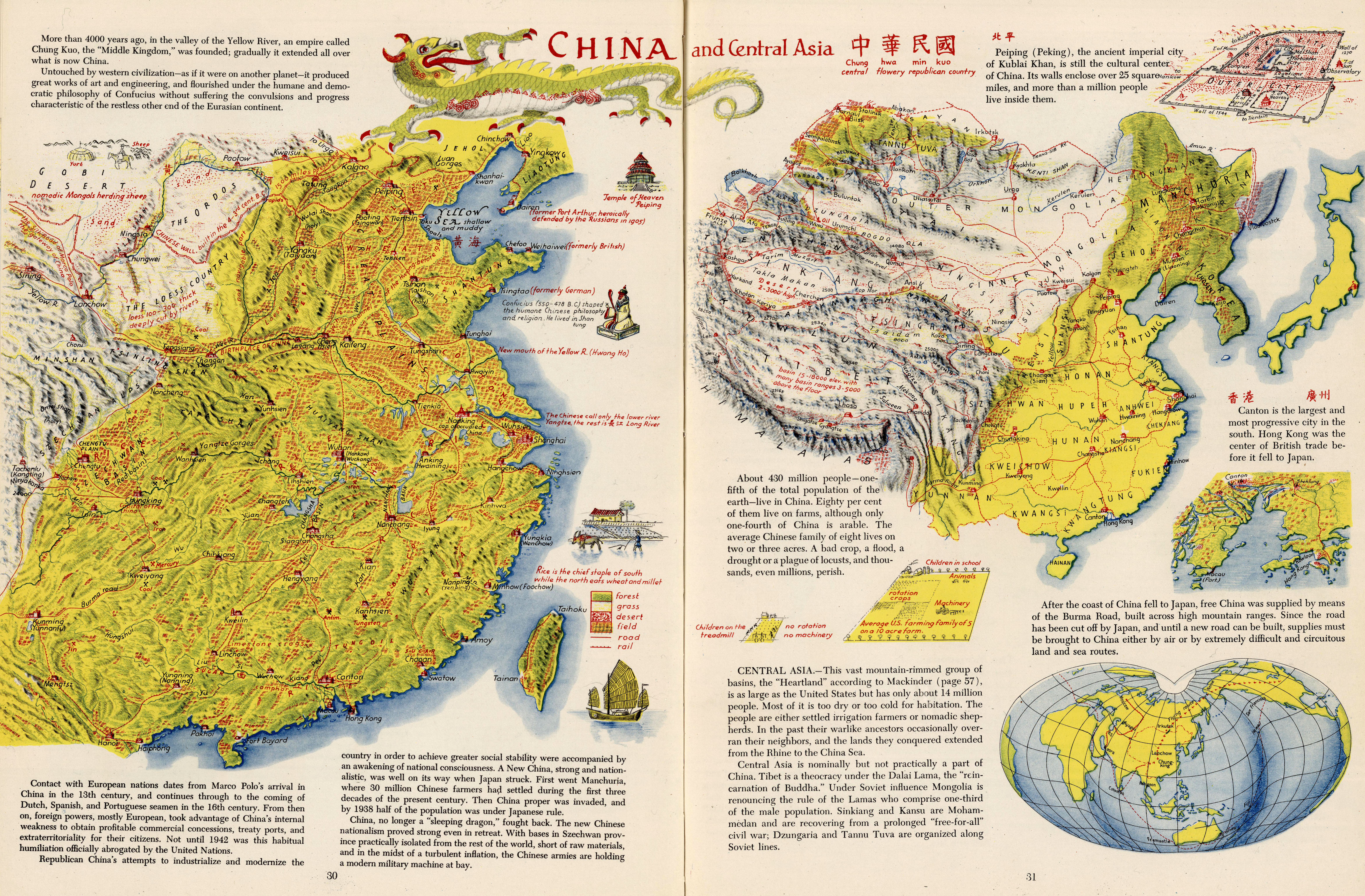 GIGANTICKÁ Fotografie + English: China And Central Asia, drawn by Erwin Raisz. 34x49cm.