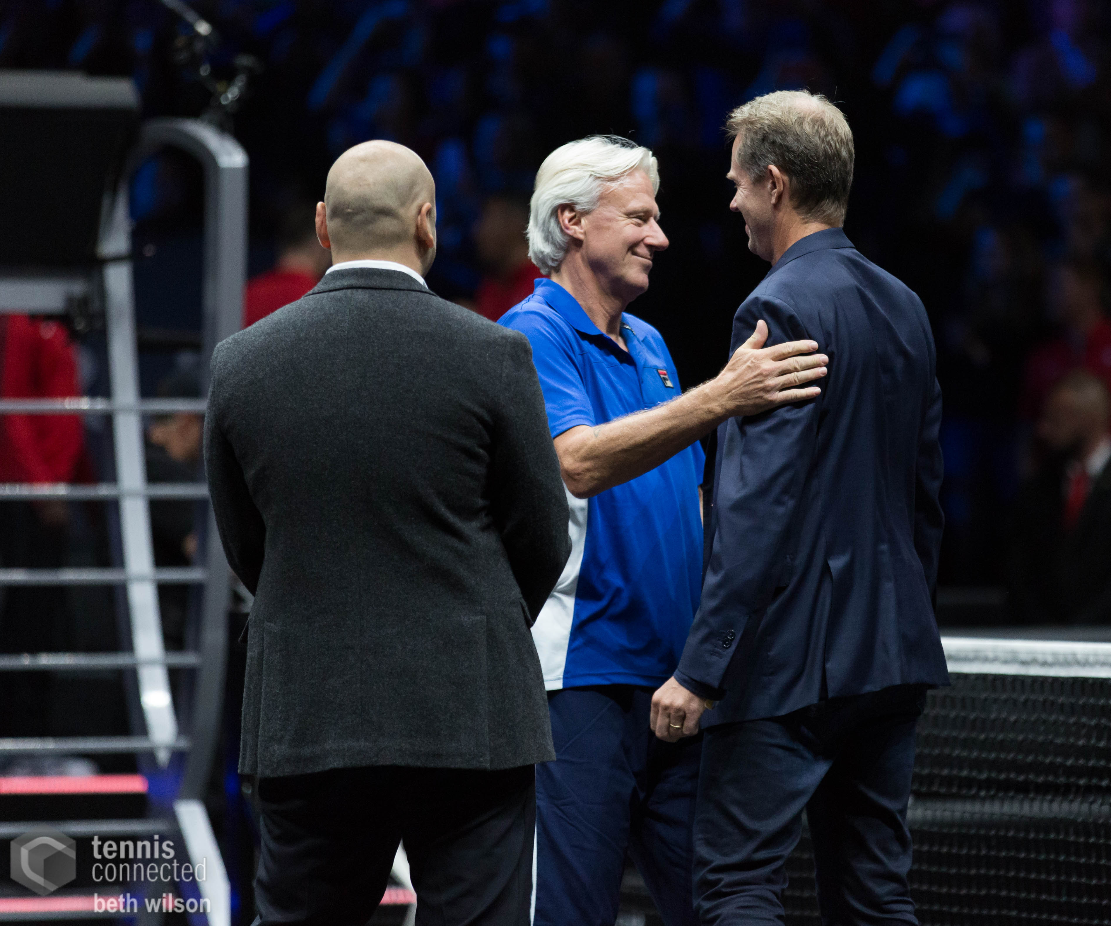 - Borg shares a warm handshake with Stefan Edberg who was there to do the coin toss.