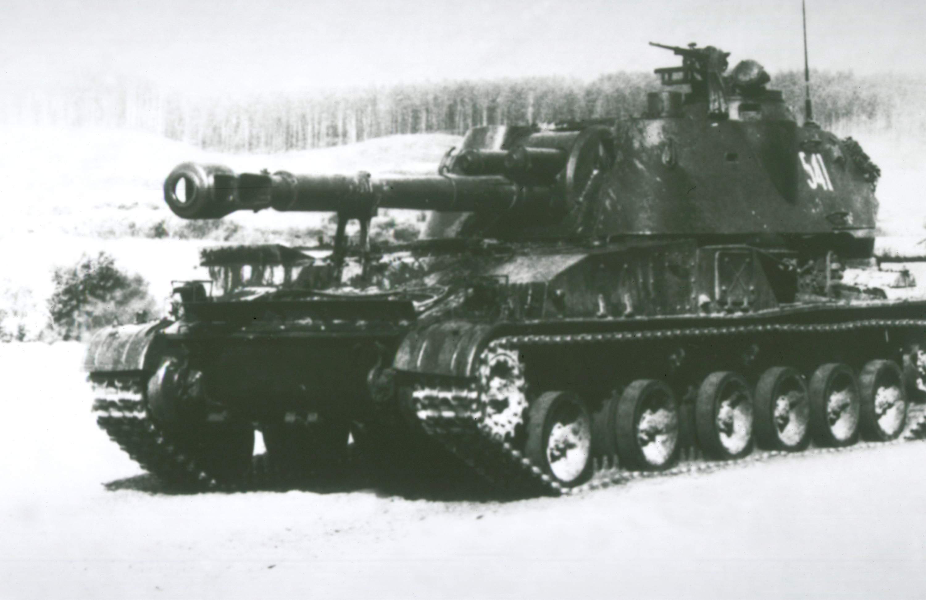 Fotografie + Description: A Soviet 2S3 152mm self-propelled howitzer.