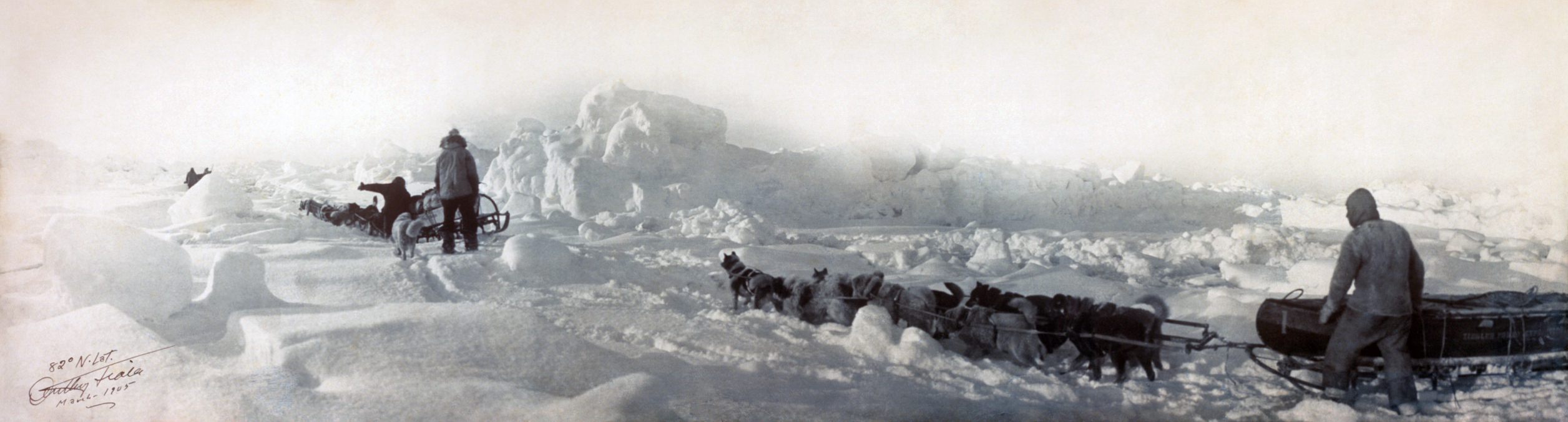 Fotografie + Description: 82 N. Latitude, panorama shot during the unsuccessful Ziegler polar expedition of 1903-1905.