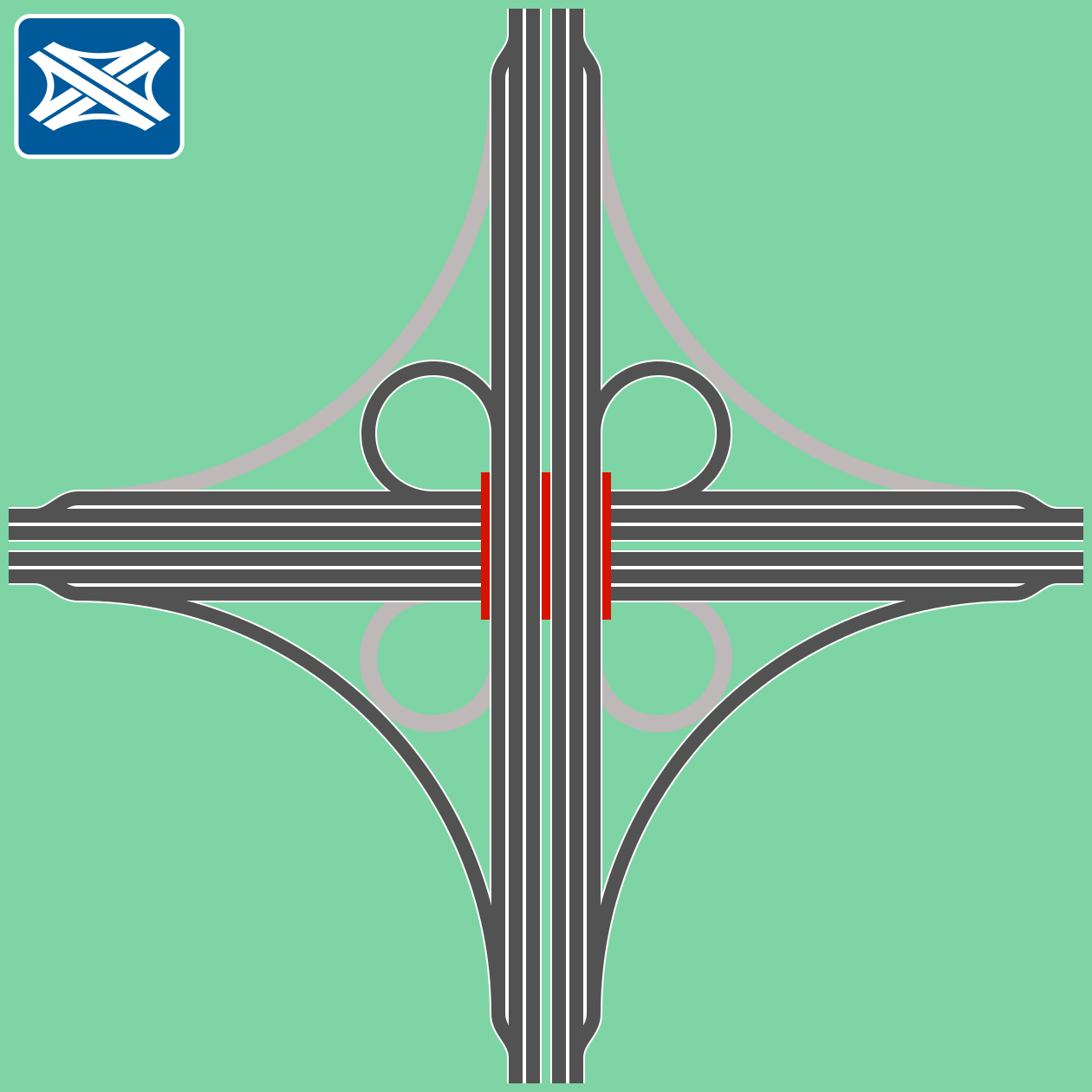 - English: Half Cloverleaf with pass through - incomplete intersection