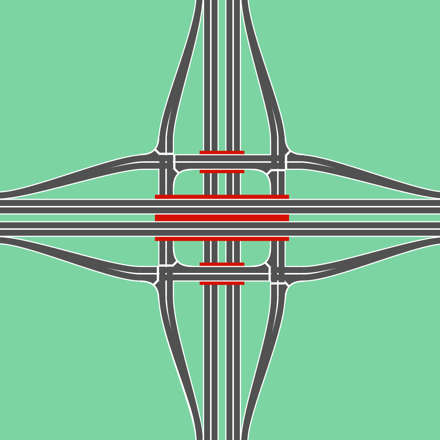 - Deutsch: Autobahnanschlussstelle Volleyball, in GB als Autobahnkreuz verbreitet