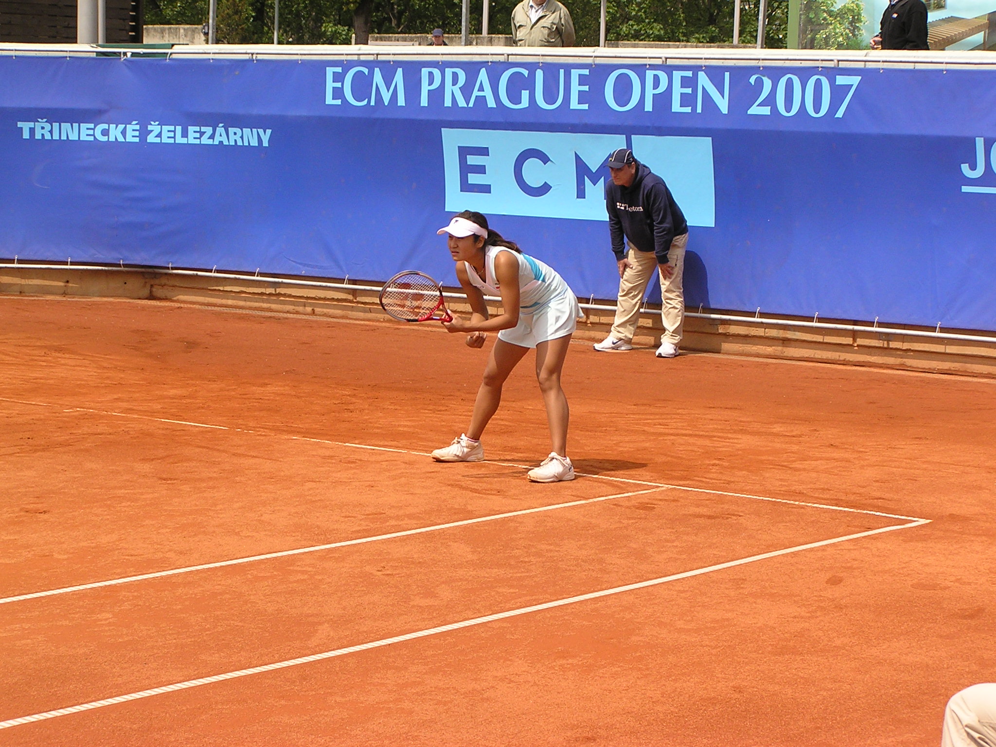 Moje vlastní fotografie + zápasu Akiko Morigami a Milagros Sequera +, kterou jsem udělal na pražském tenisovém turnaji -- ECM Prague Open, květen, 2007.