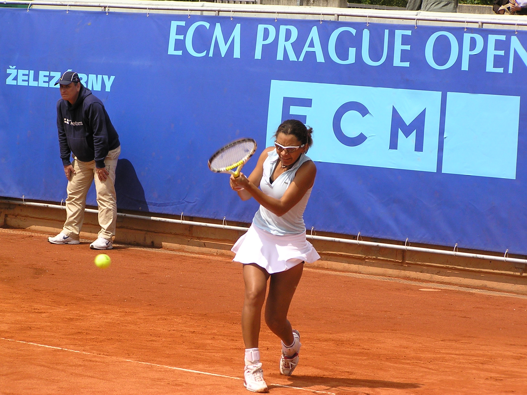 Moje vlastní fotografie + zápasu Akiko Morigami a Milagros Sequera +, kterou jsem udělal na pražském tenisovém turnaji -- ECM Prague Open, květen, 2007.