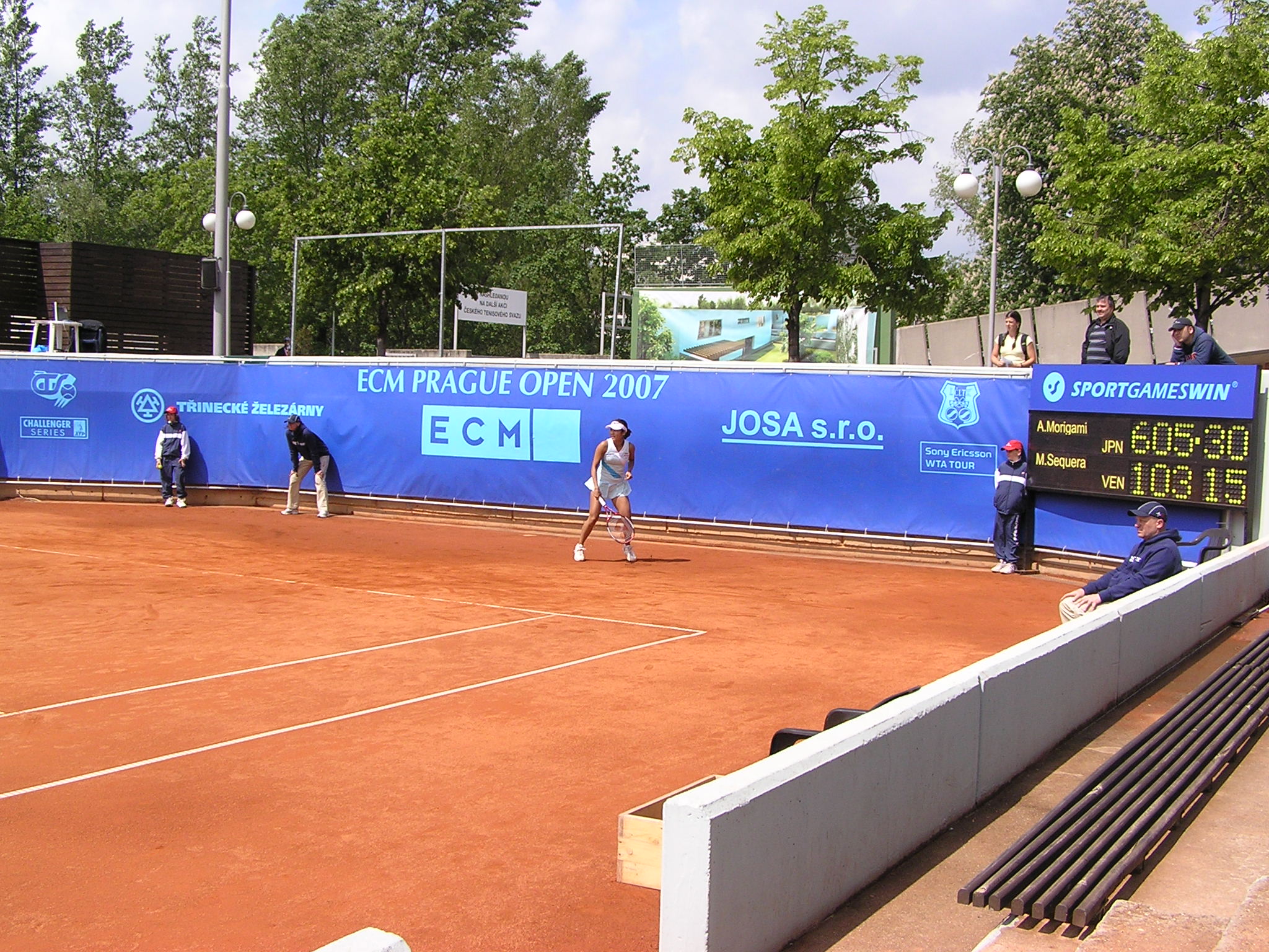 Moje vlastní fotografie + zápasu Akiko Morigami a Milagros Sequera +, kterou jsem udělal na pražském tenisovém turnaji -- ECM Prague Open, květen, 2007.