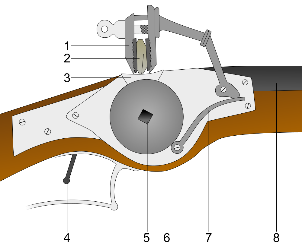 Obrázek + Description: English: Illustration of the shooting system of an ancient rifle.