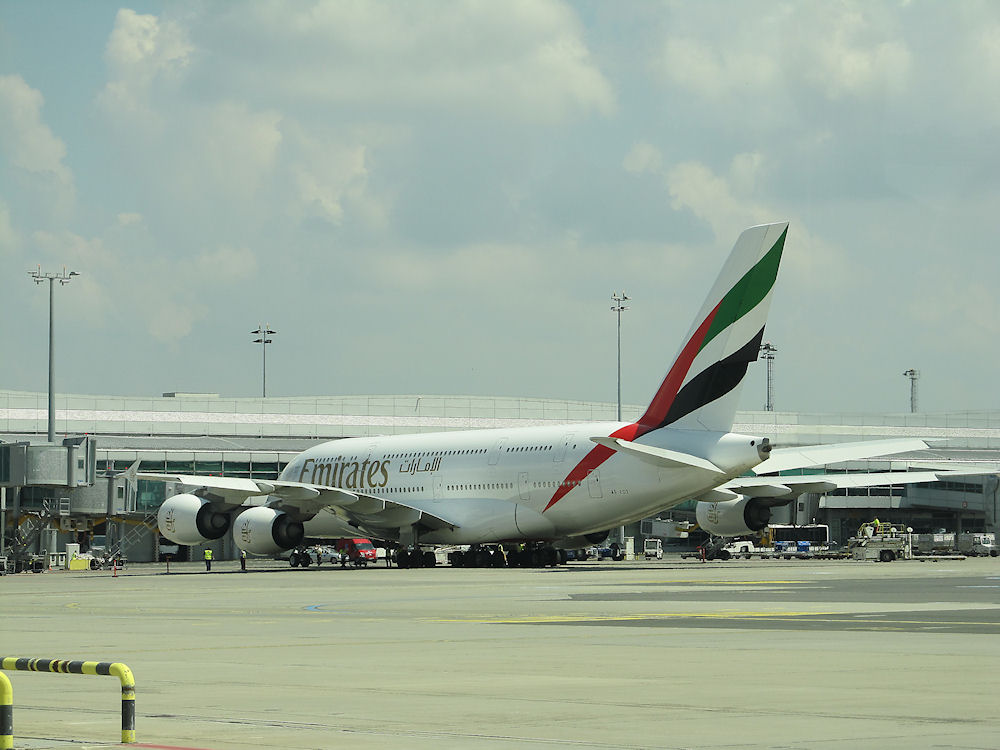 - English: Airbus A380-861, A6-EDT, The Emirates Prague Vaclav Havel Airport (PRG). 04.06.2018 r.