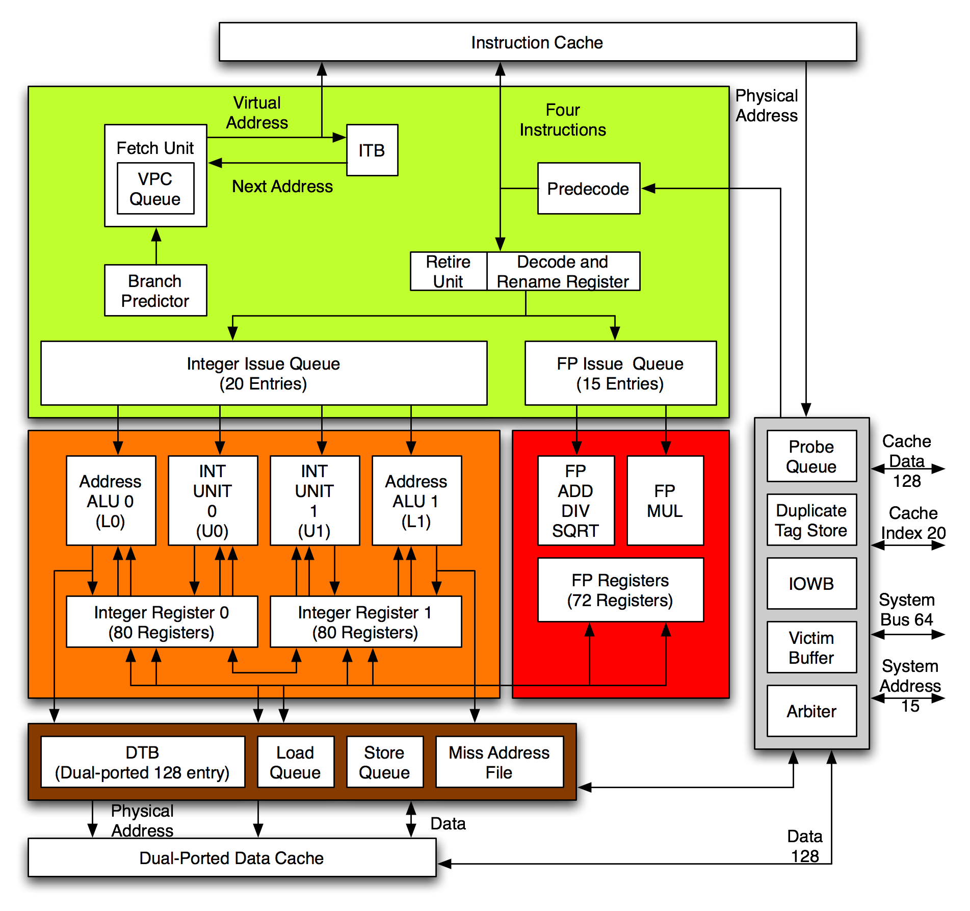 | současná | 13. 5. 2013, 08:00 | 1 903×1 787 (224 kB) | Sysop (diskuse | příspěvky) | (Obrázek + Přesné schéma procesoru DEC Alpha 21264 (9/10/2006) + pochází z Wikimedia Commons, kde má status - Public domain (autor: Hellisp). Kategorie:PD fotografie) |
