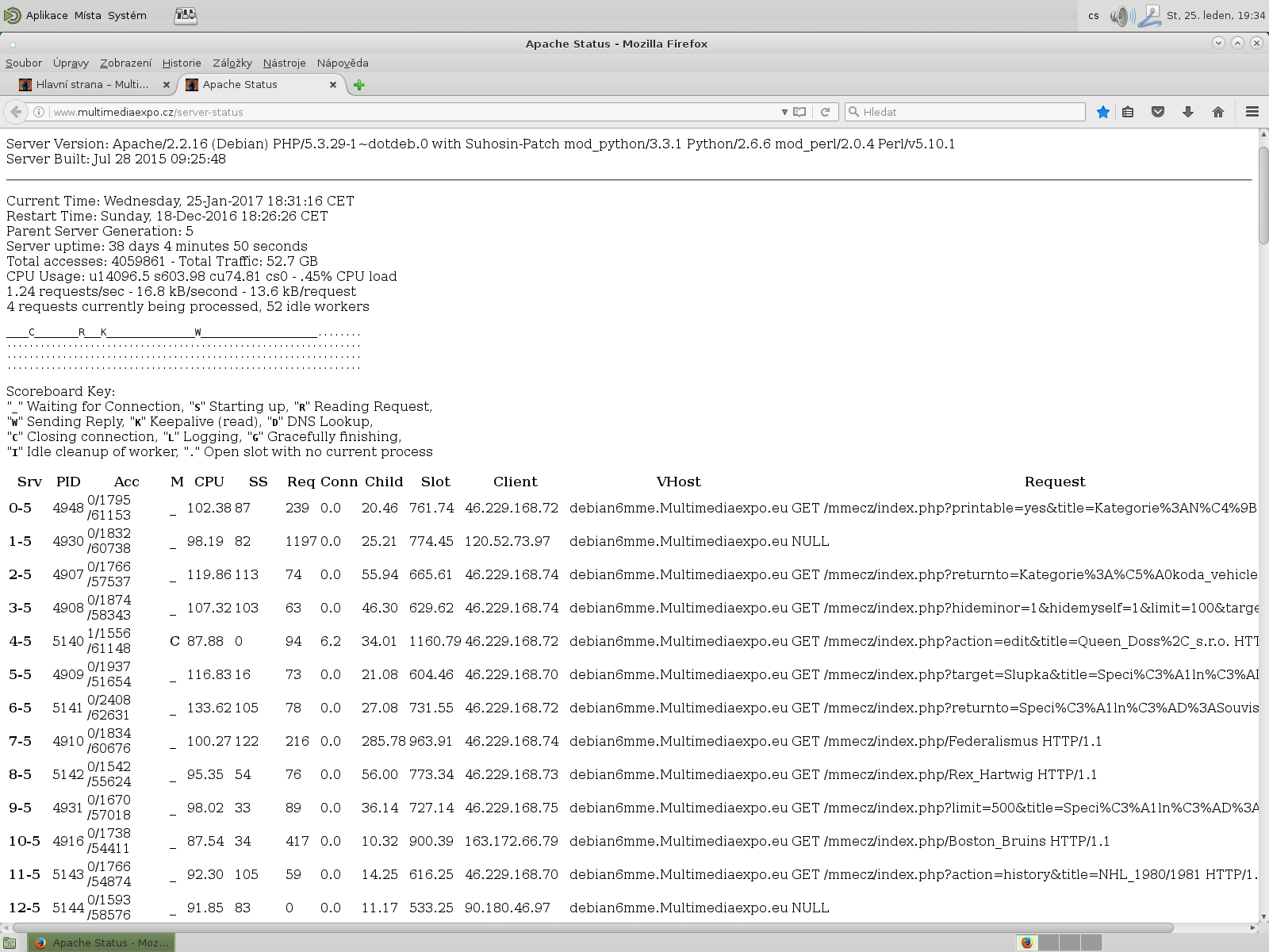 - Firefox ESR ukazuje jeden z modulů webového serveru Apache HTTP Server – Apache Server Status (Module mod_status).