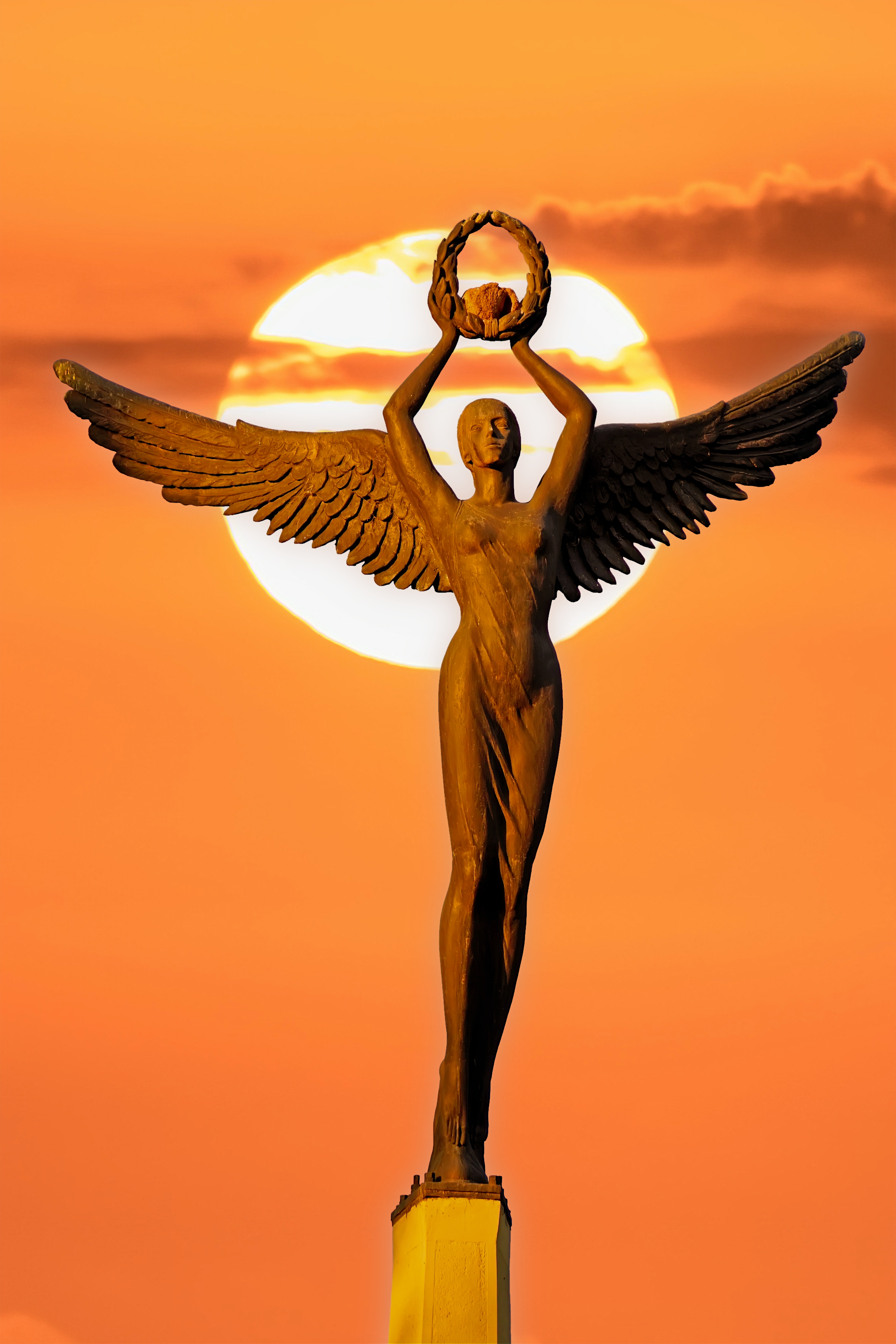 • The allegory, of a winged female figure, who throws herself into space with her arms raised.