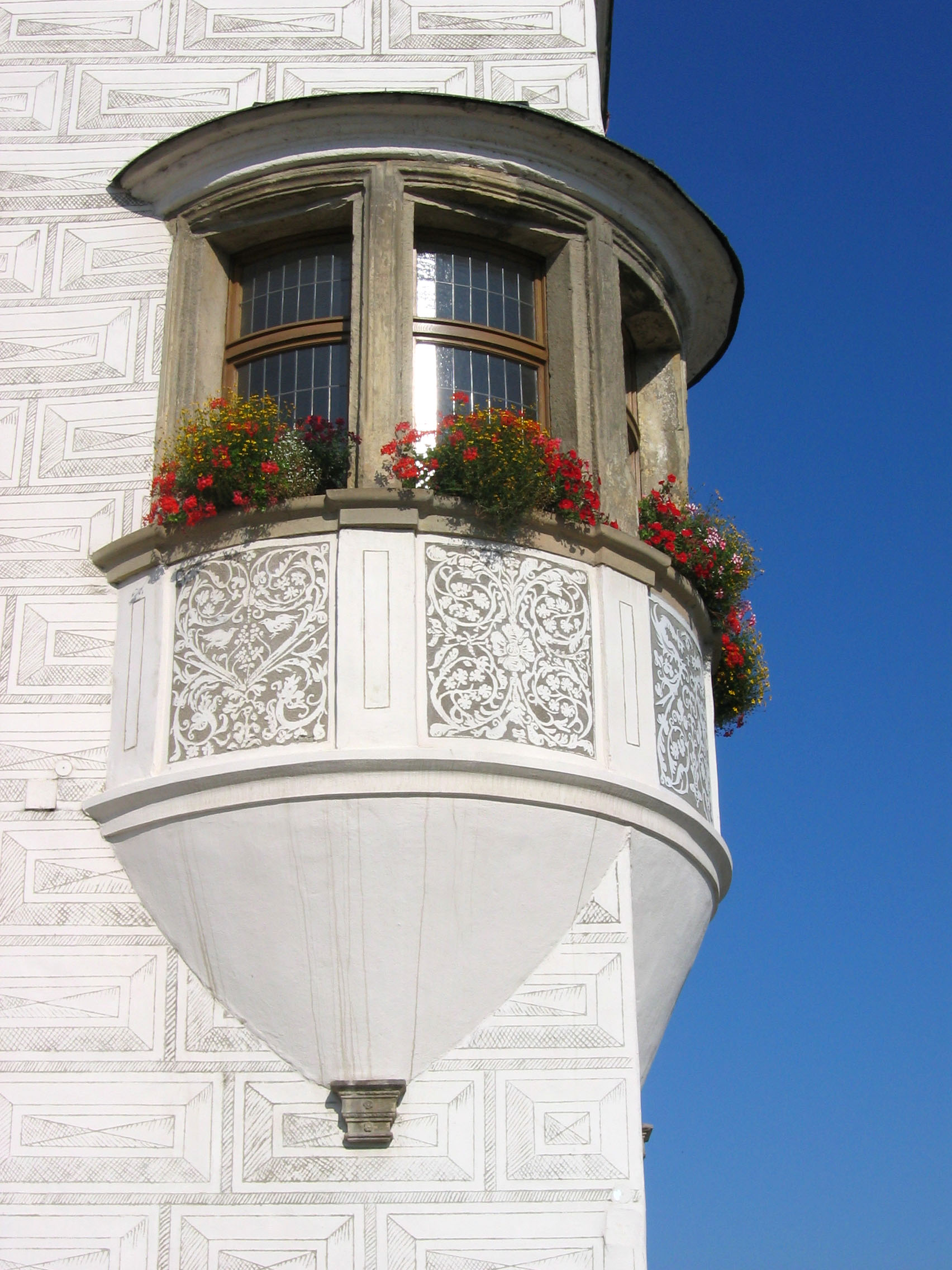 Fotografie + Description: Renesanční arkýř radnice v Kyjově
