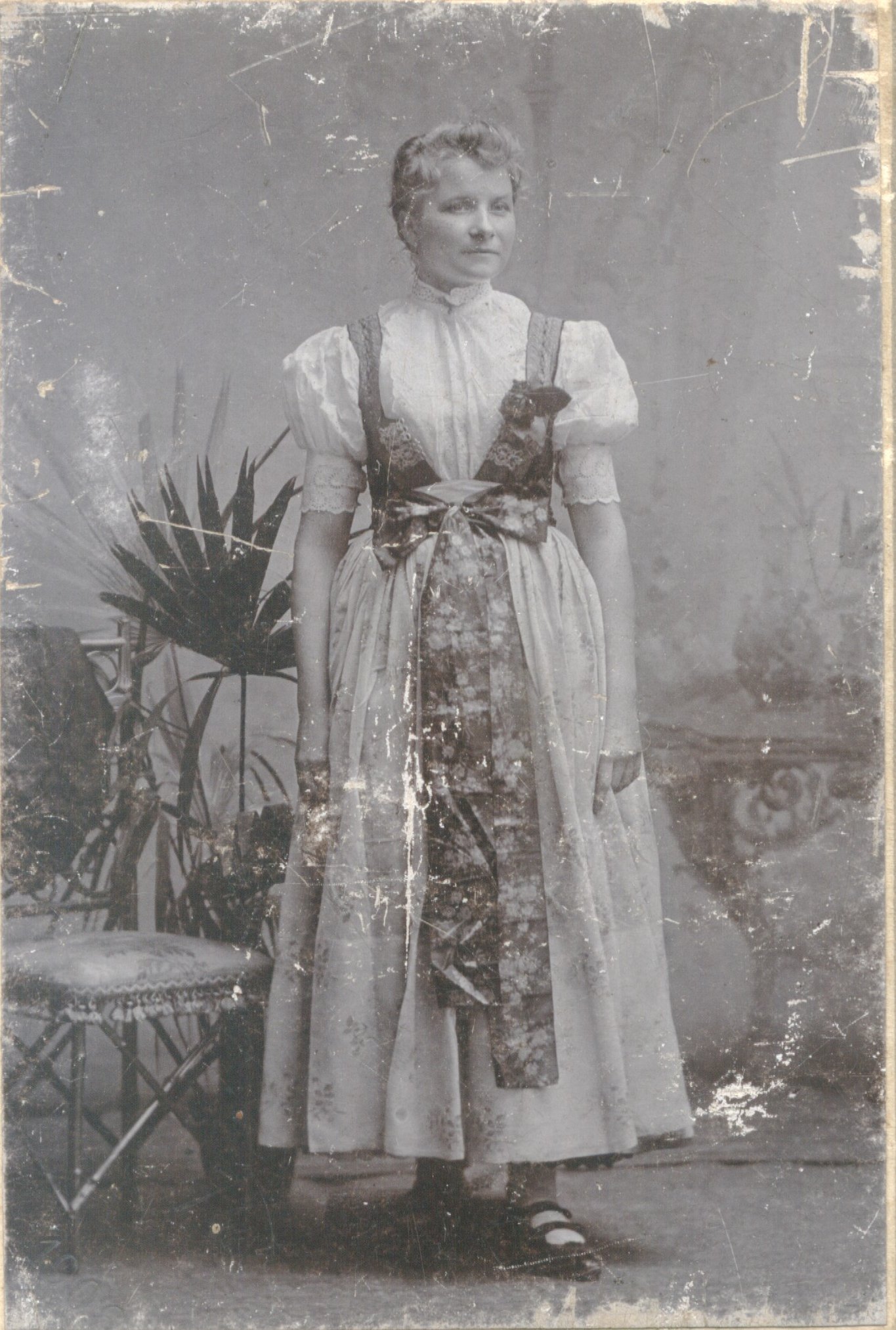 - Polski: Kobieta w stroju cieszyńskim, około roku 1914