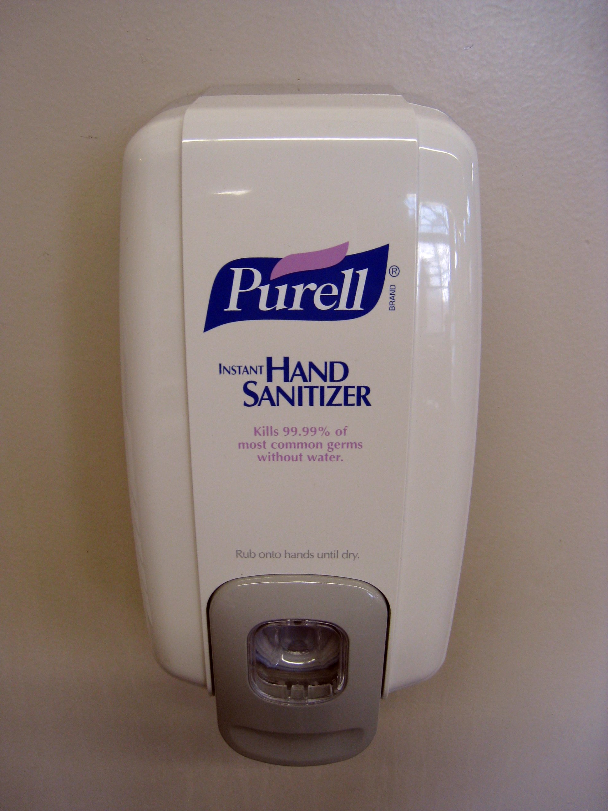 Fotografie + Description: Hey folks, we have Purell stations throughout the library for you to use. It's that time of the year--flu and cold season!