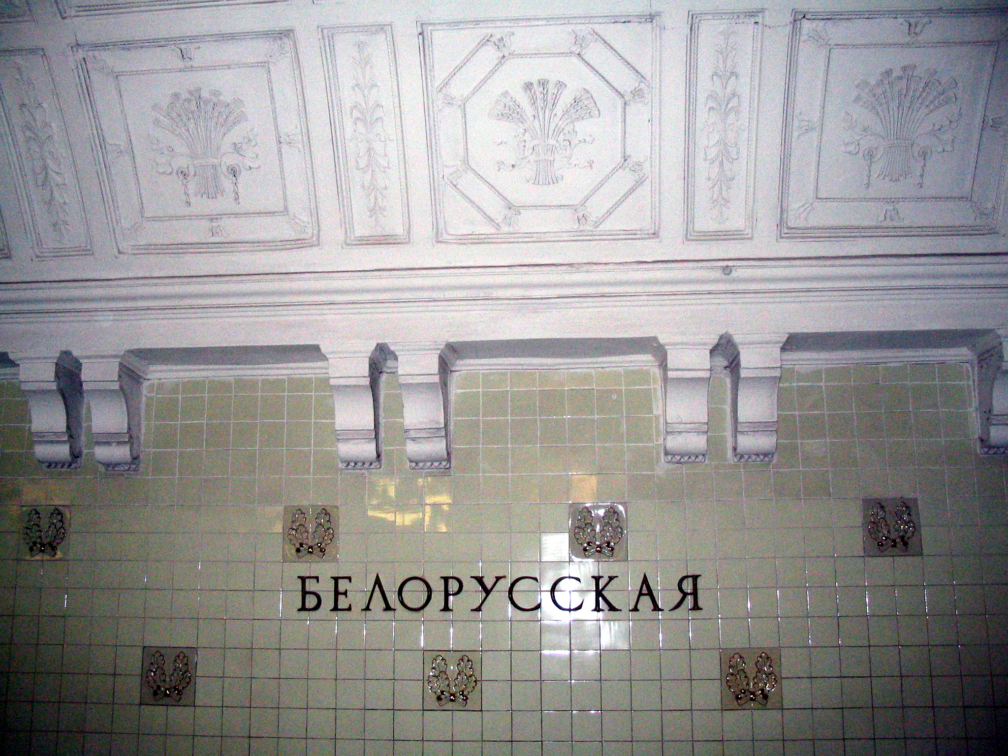 Fotografie + Image of the Belorusskaya subway station in Moscow, 2006 + pochází z Wikimedia Commons, kde má status – I, the copyright holder of this work, release this work into the public domain. This applies worldwide.