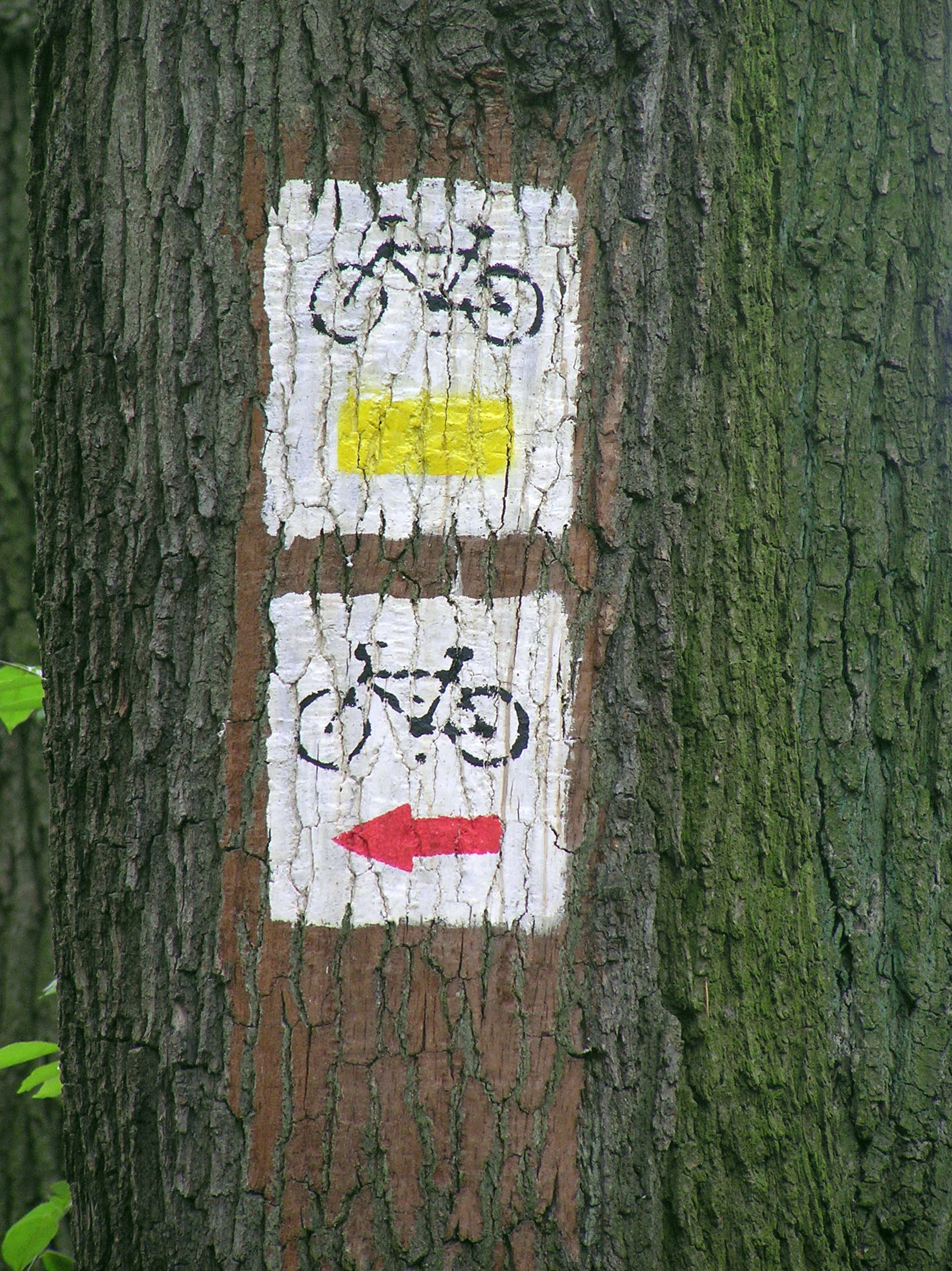 Fotografie + Polski: Oznaczenie szlaków rowerowych na drzewie, okolice Torunia