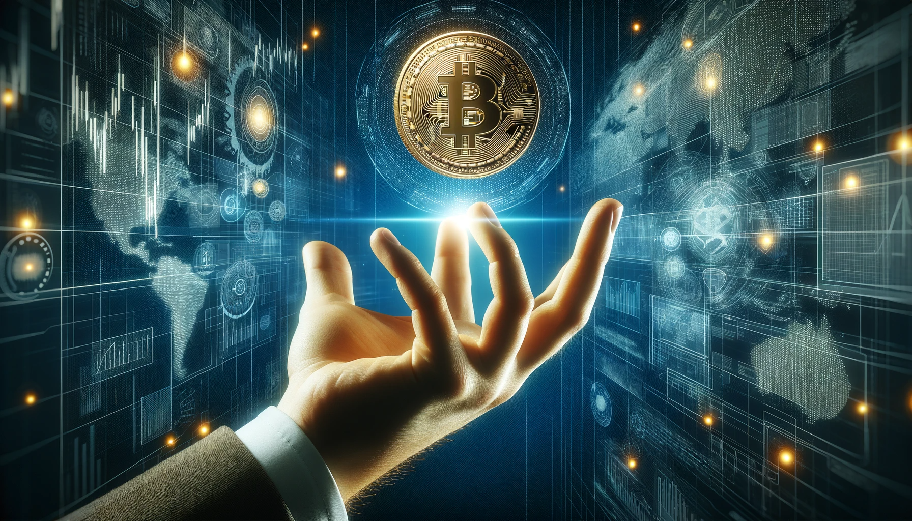 Fotografie + Deutsch: Bitcoin im Aufwind: Münzwurf mit Digitalen Grafiken (Uploaded on January 3, 2024)