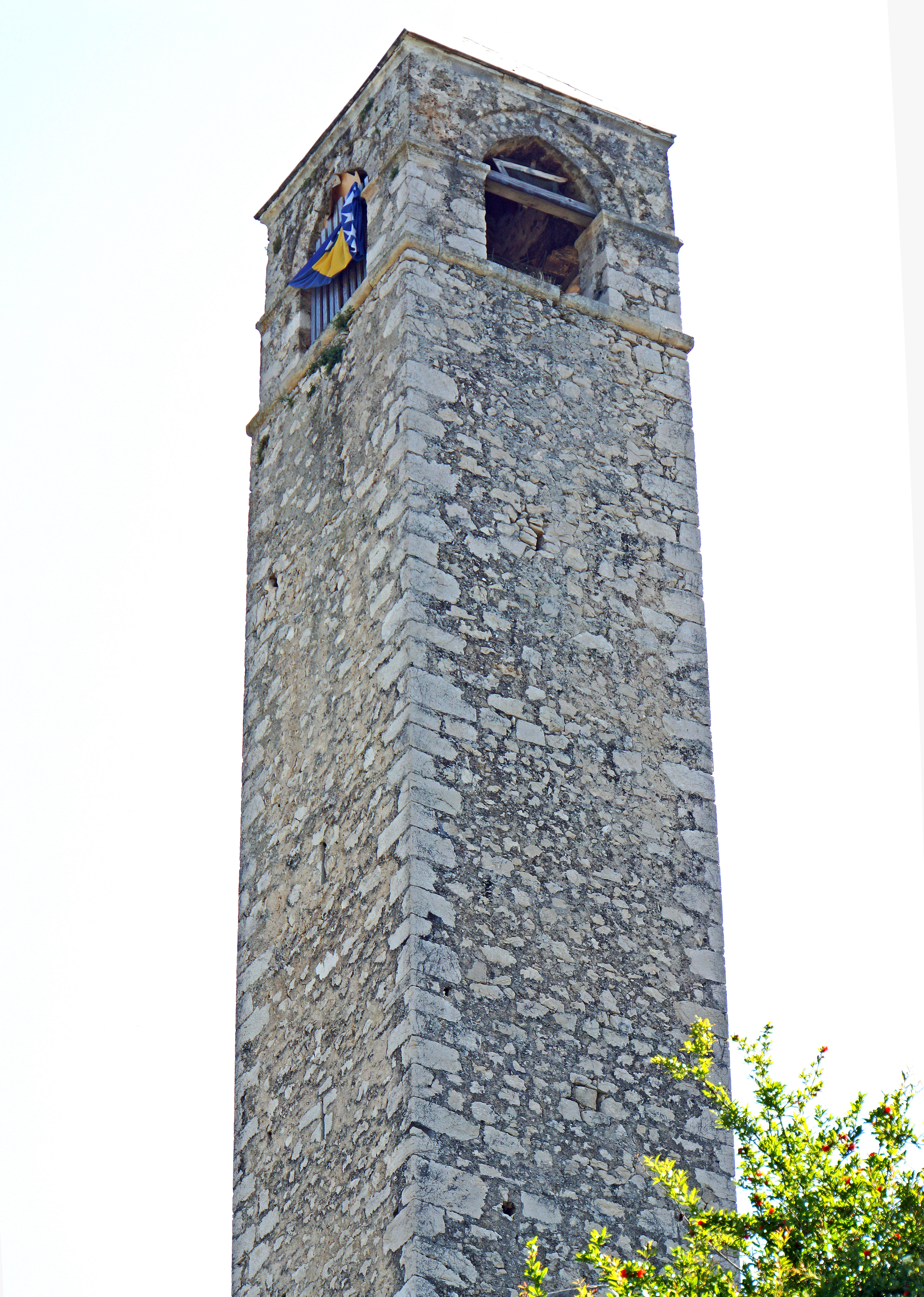- SAHAT-KULA – Clock Tower – it is assumed that it was erected at a date later than 1664. It is typical of clock-towers in Herzegovina, which arose under the influence of Mediterranean-Dalmatian architecture. It is stone-built, with dressed quoins and ending in a stone pyramid. There are four pointed arches on the four sizes above the opening near the top of the tower. This type of sahat-kula is to be found in Počitelj, Mostar, and Stolac.