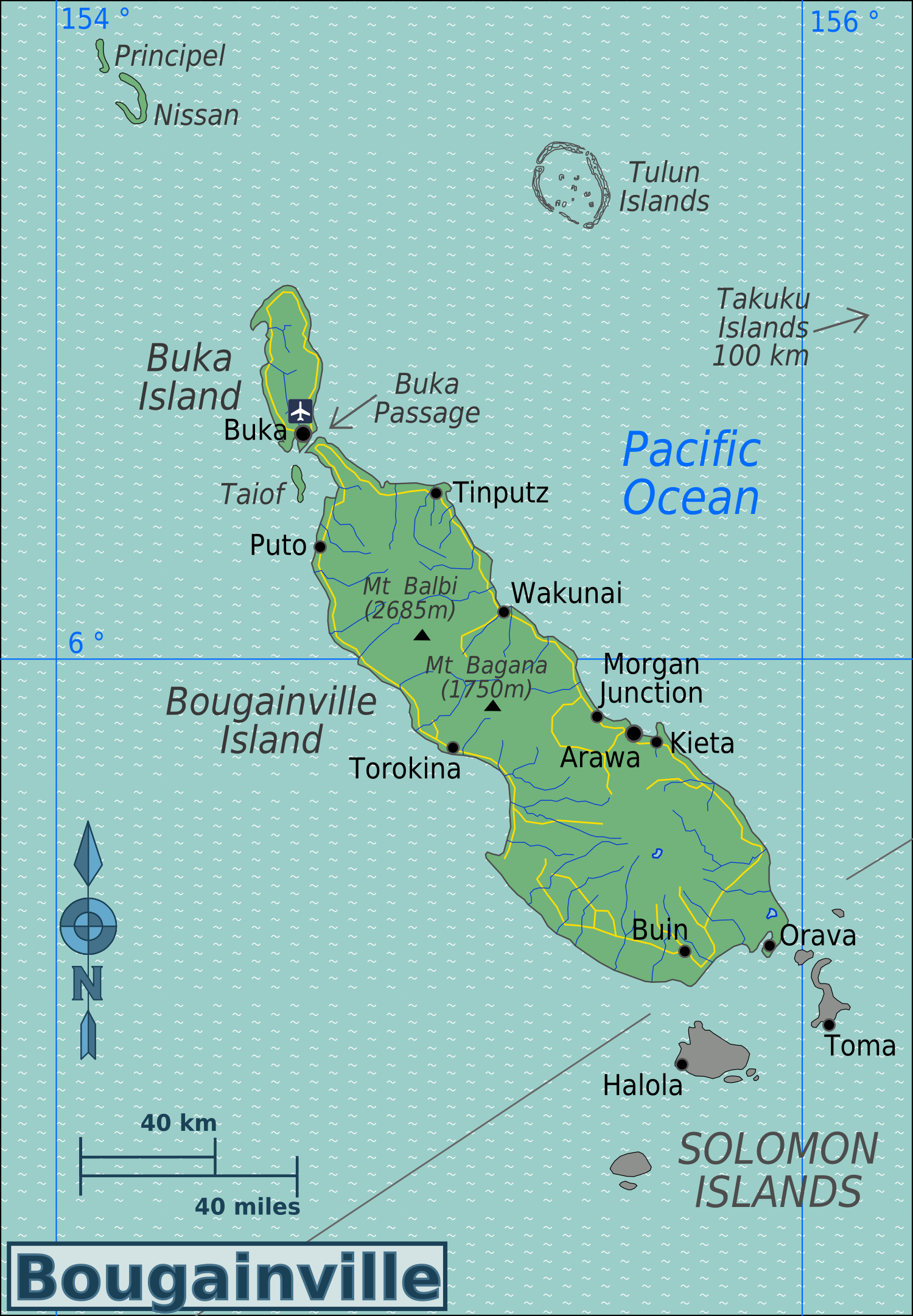 Mapa + Description: Map of Bougainville (Papua New Guinea) for use on Wikivoyage, English version