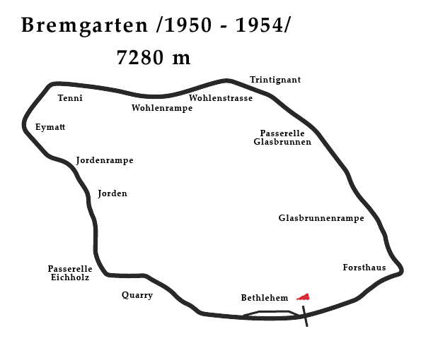 - Čeština: Plánek trati Bremgarten Circuit, na kterém se v letech 1950 - 1954 pořádala Grand Prix Švýcarska.