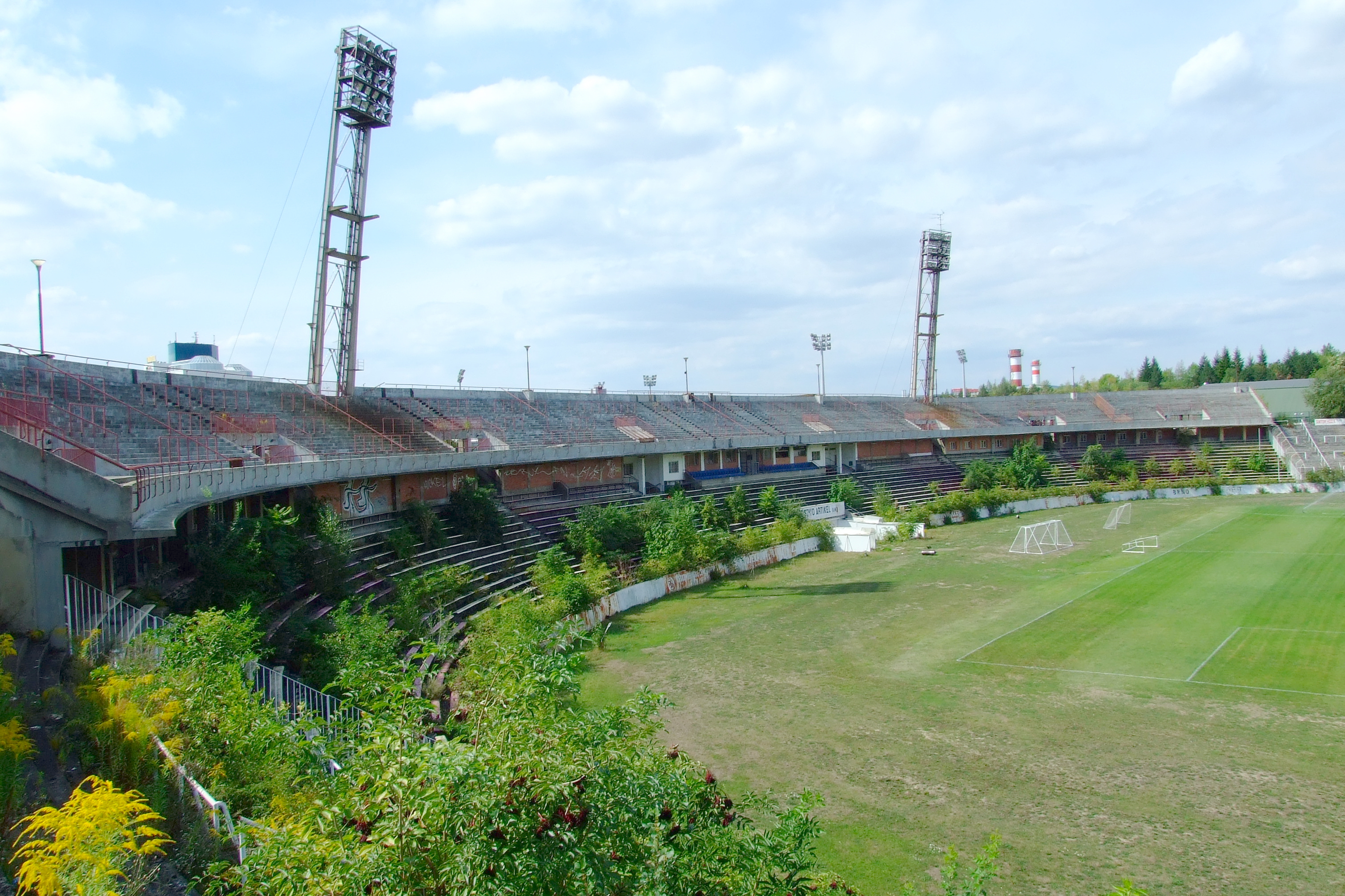- English: Brno-Ponava - football stadium Za Lužánkami (western tribune)