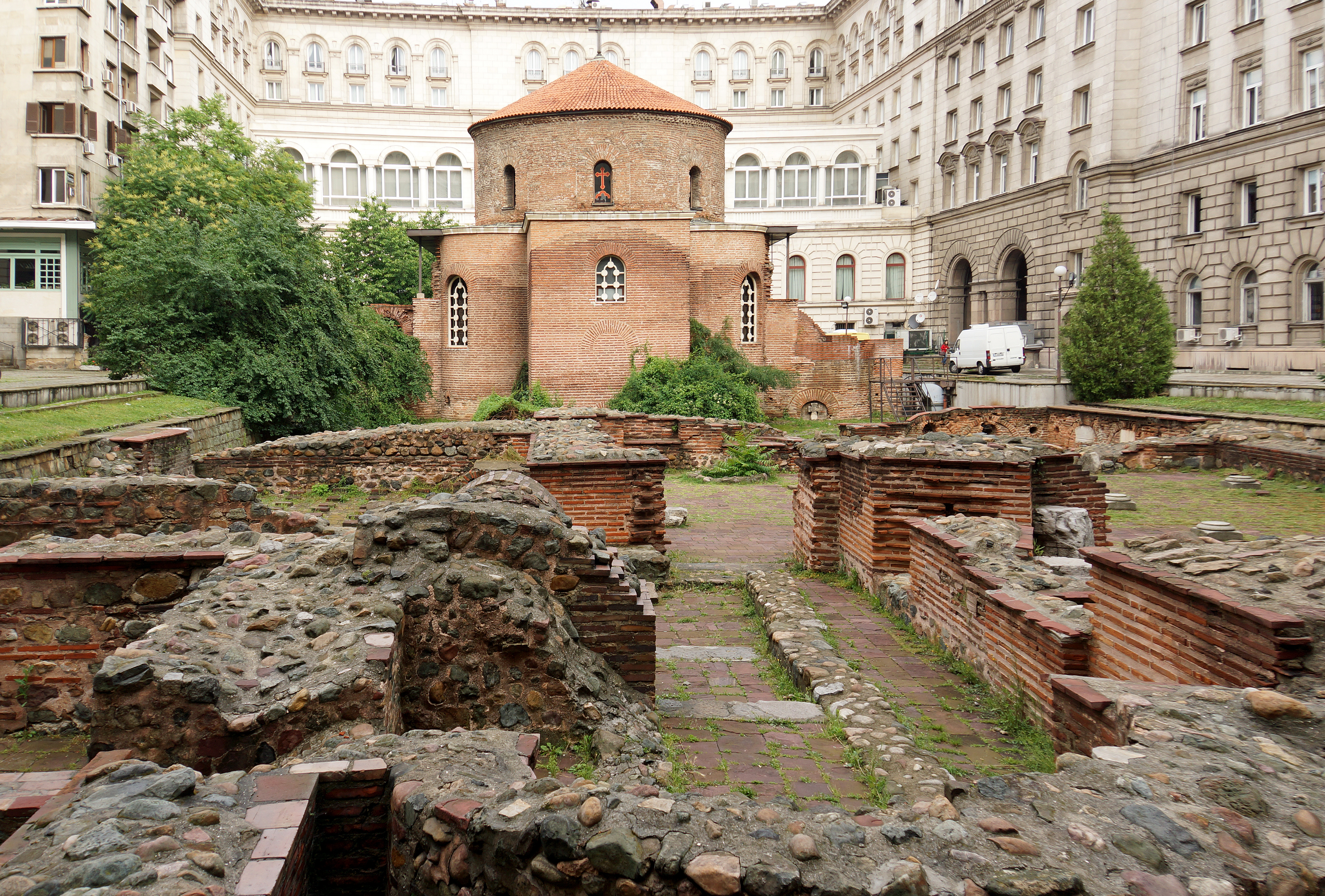 • The Church of St George is an Early Christian red brick rotunda, it is the oldest building in Sofia. The rotunda has a diameter of 9.5m (31ft) and is about 14m (46ft) high. It's brick walls are an impressive 1.40m (4.6ft) thick. The building is situated amid remains of the ancient town of Serdica.