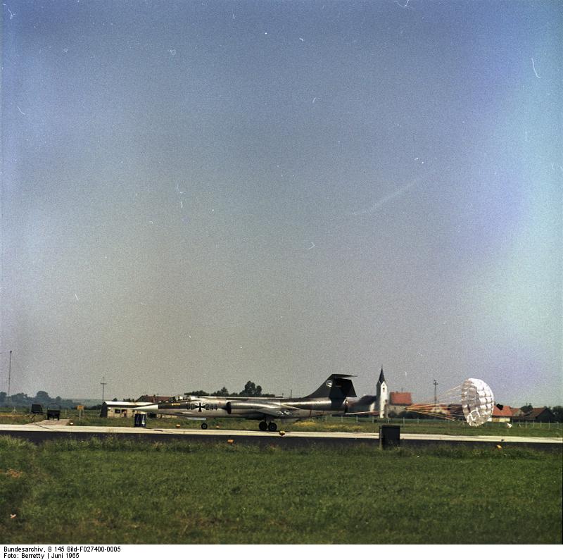 - Archive description: Jagdflugzeug F-104 "Starfighter" des Jagdgeschwader 74 "Mölders", Landung mit Bremsfallschirm