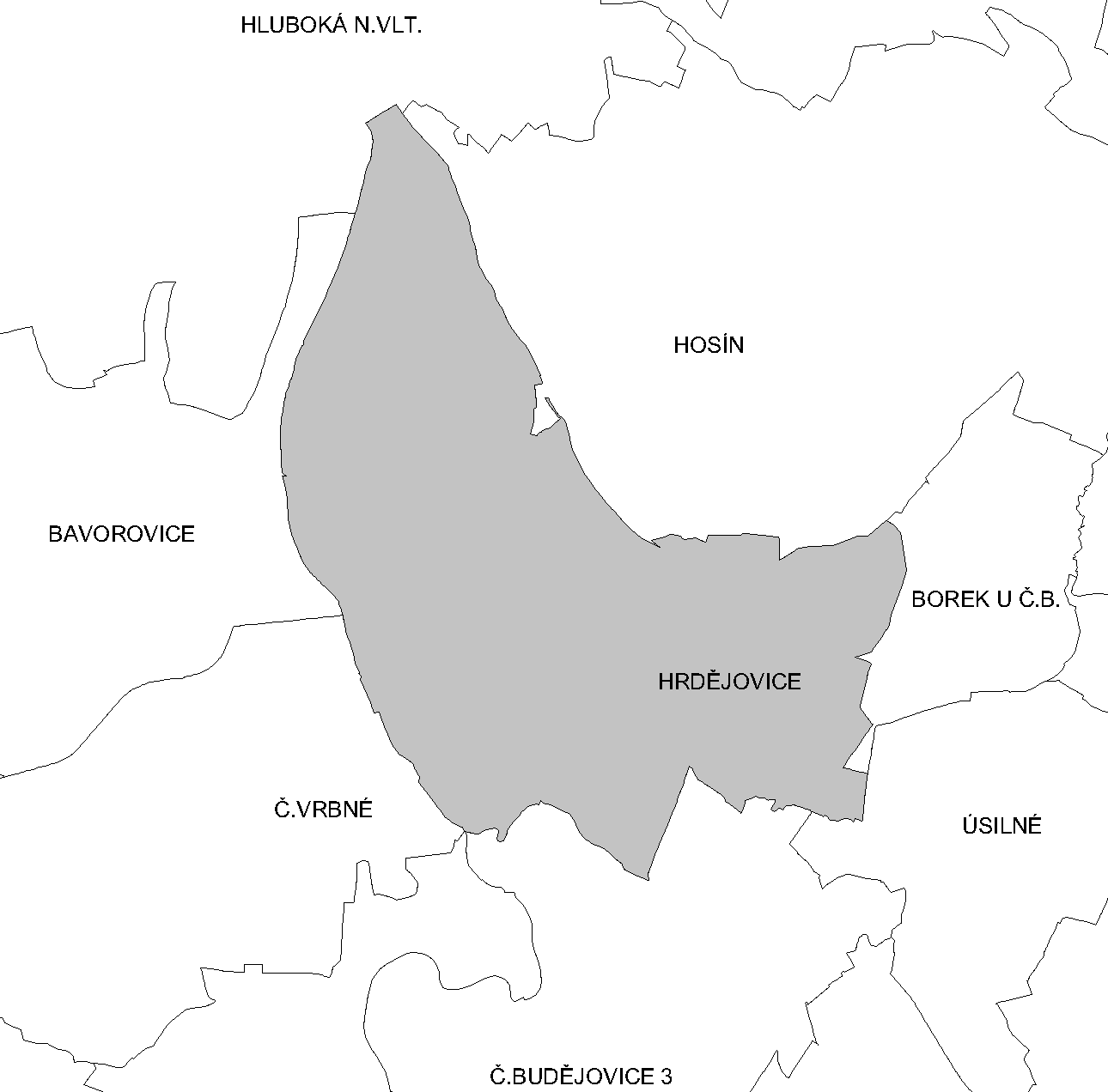 Mapa + Description: Čeština: Katastrální území Hrdějovic