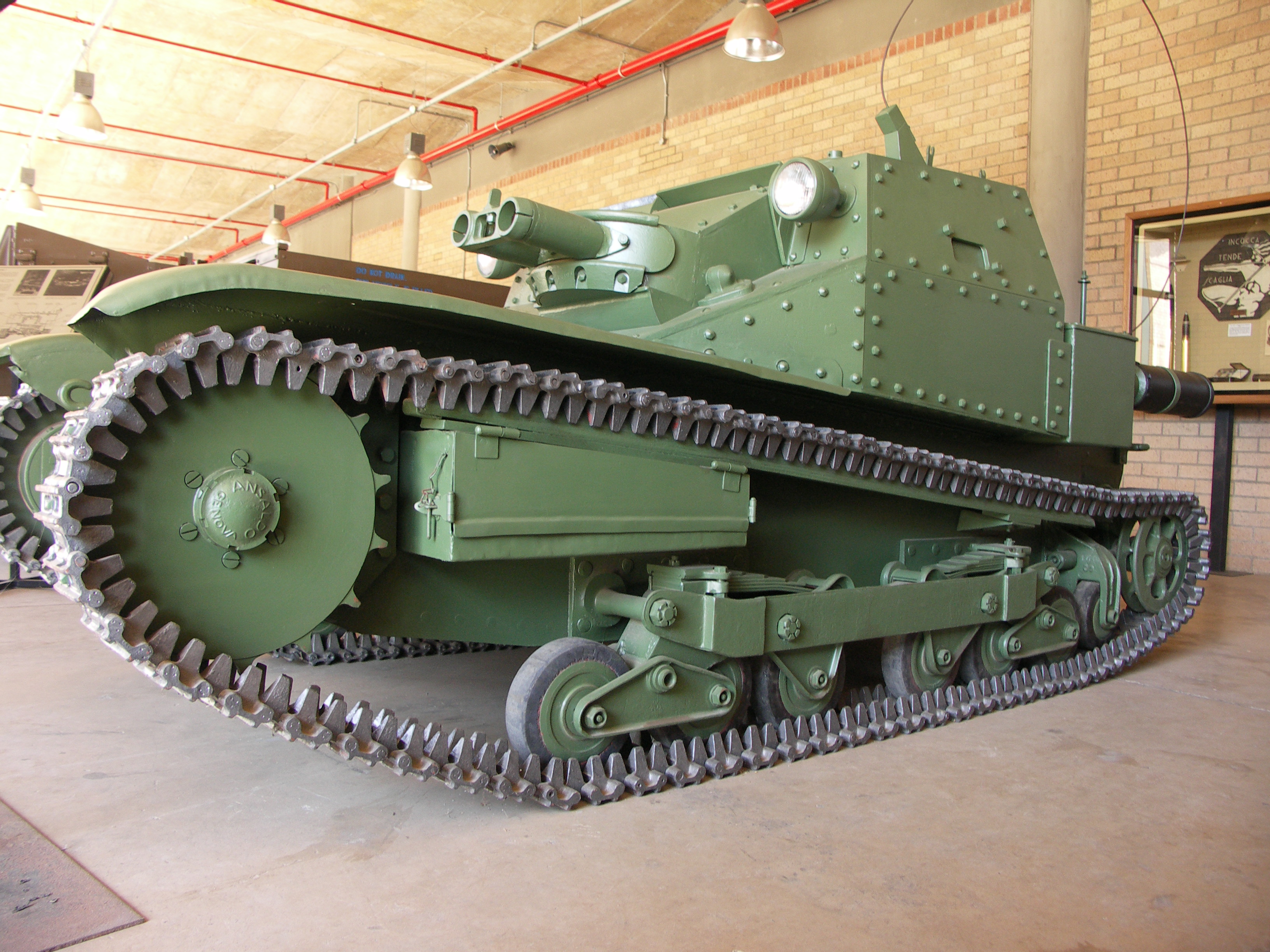 Fotografie + English: An Italian Carro Legerro 3/35 (L3/35) Light Tank Photo taken at the South African Museum of Military History