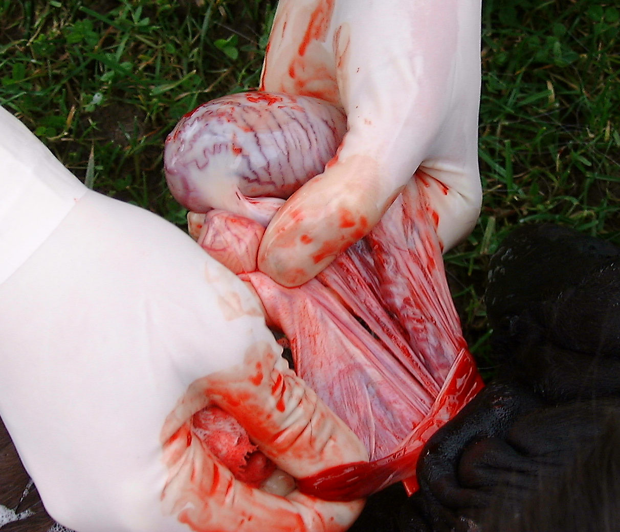 Fotografie + Description: Performing an open castration in a horse lying anaesthetised in lateral recumbency. Taken by Malcolm Morley MRCVS