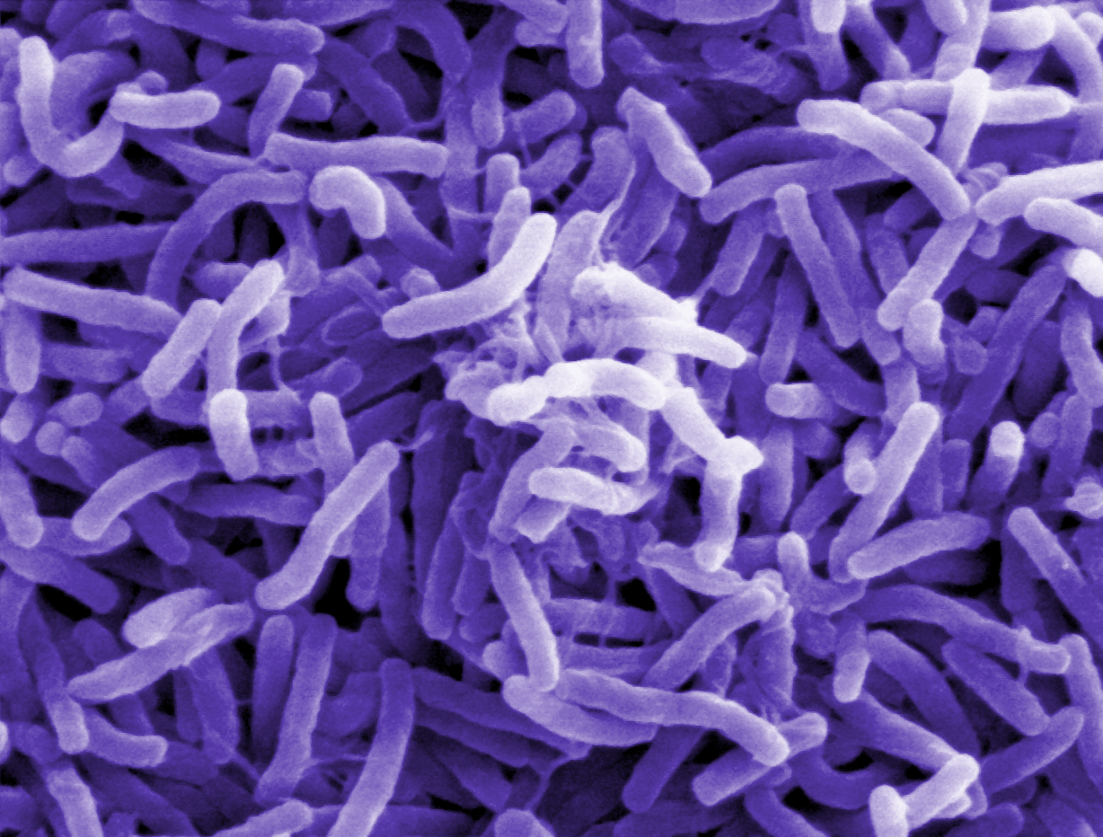 - Scanning electron microscope image of Vibrio cholerae bacteria, which infect the digestive system.