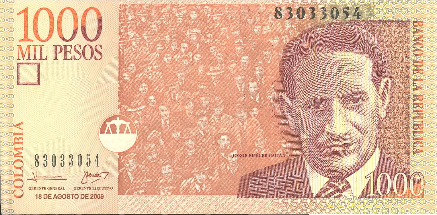 Fotografie + English: Scan of the obverse of 1000 pesos.