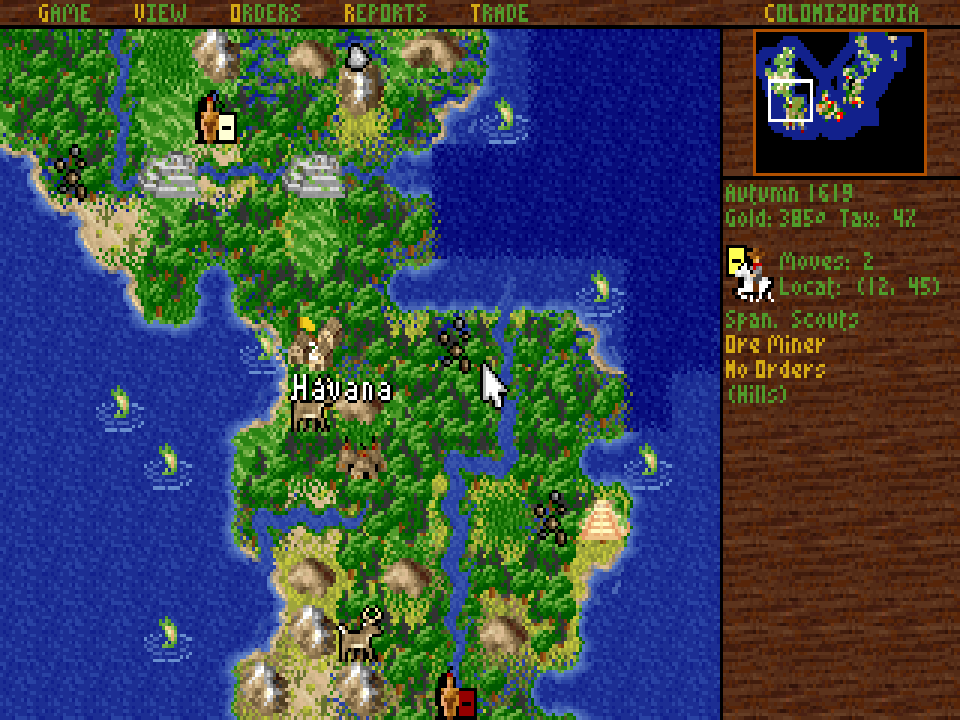 Aktuální snímek počítačové hry + Sid Meier's Colonization (GOG.com) + pochází z mého vlastního počítače.