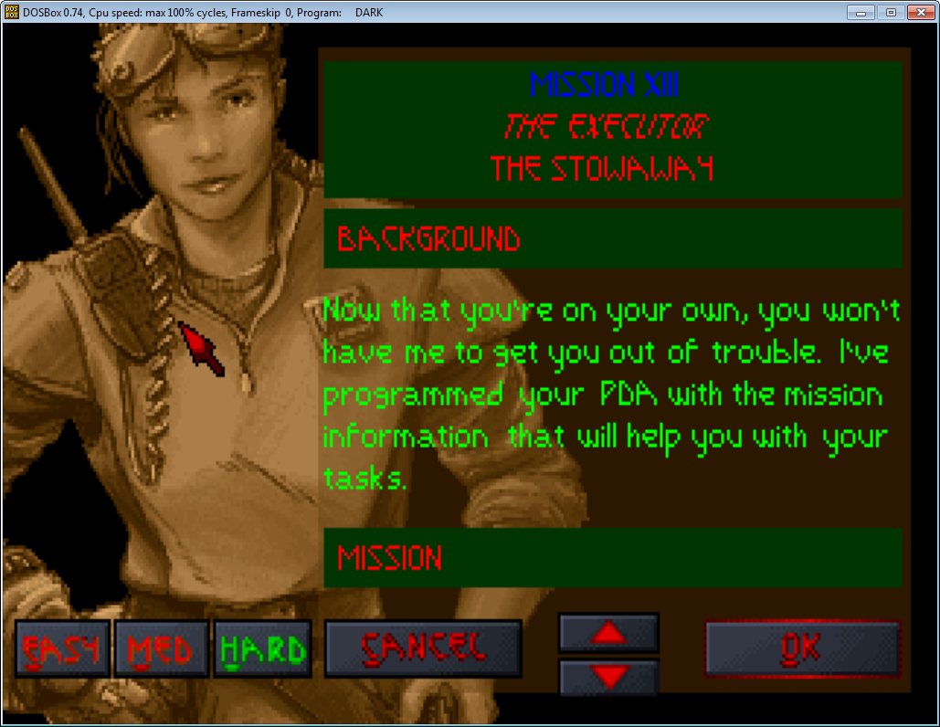 Aktuální snímek počítačové hry + Star Wars: Dark Forces 1 + pochází z mého vlastního počítače.