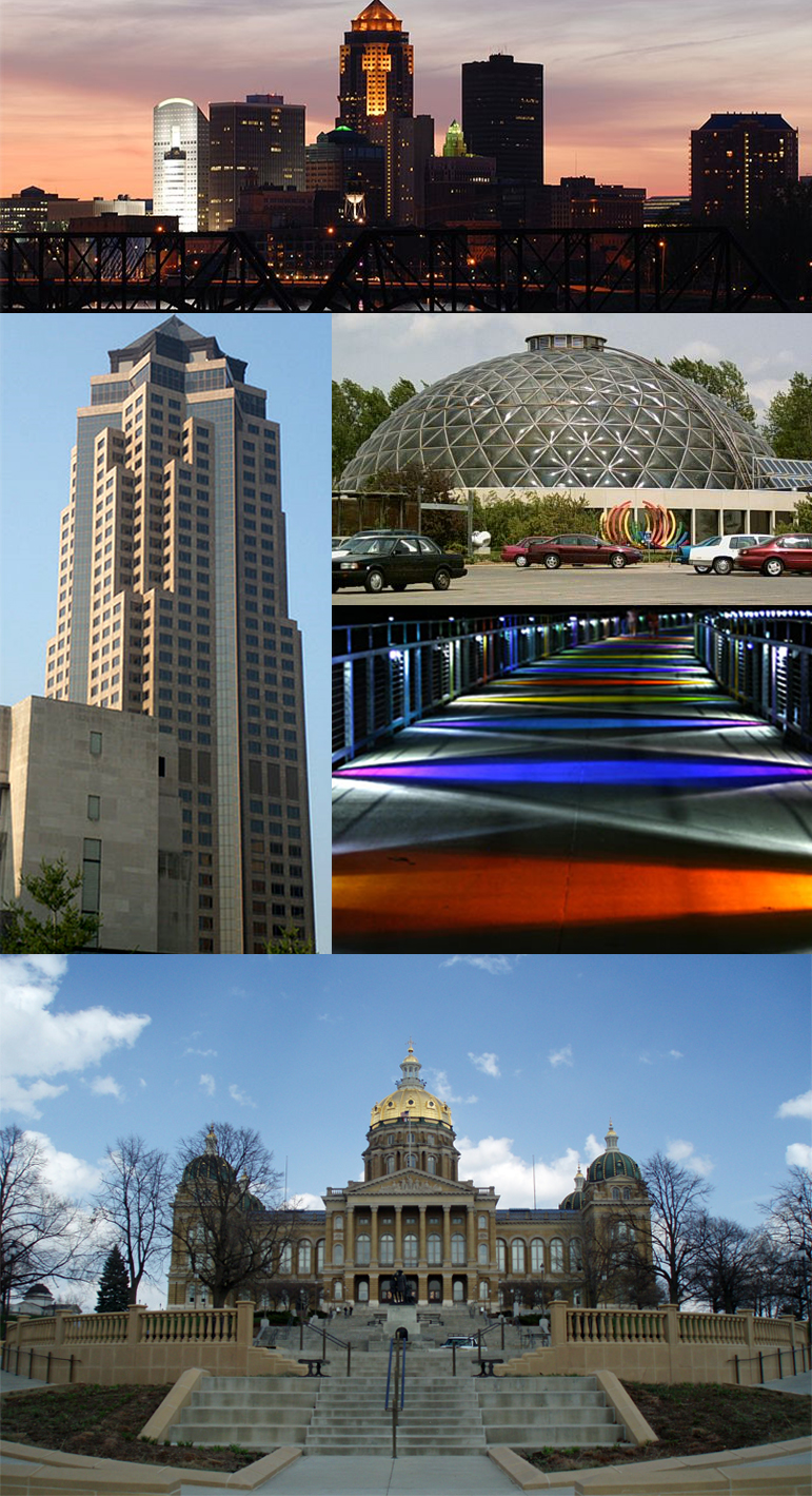 - English: Montage of Des Moines.