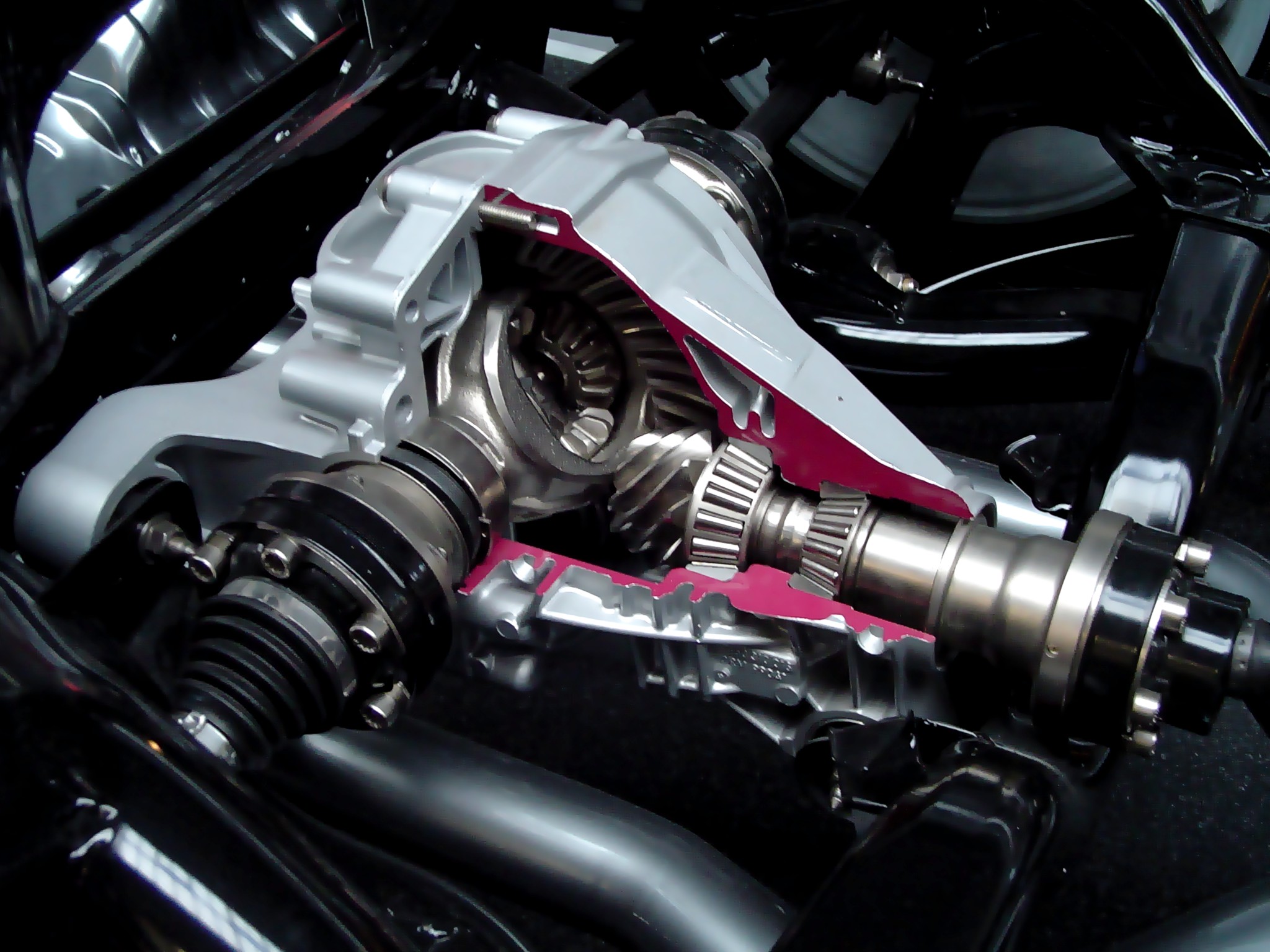 - Polski: Przekrój dzisiejszego mechanizmu różnicowego z Porsche Cayenne. Dwa łożyska w prawej części są od wału napędowego.